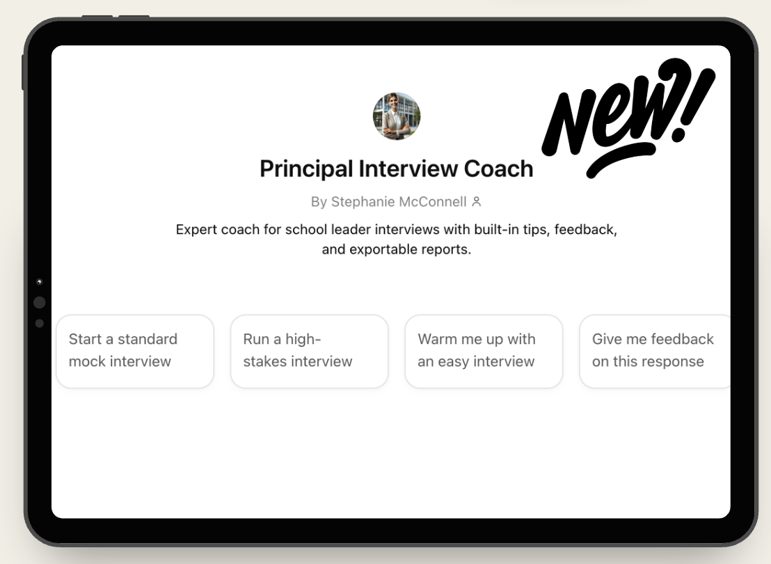Now includes a custom AI interview coach built specifically for school leadership interviews